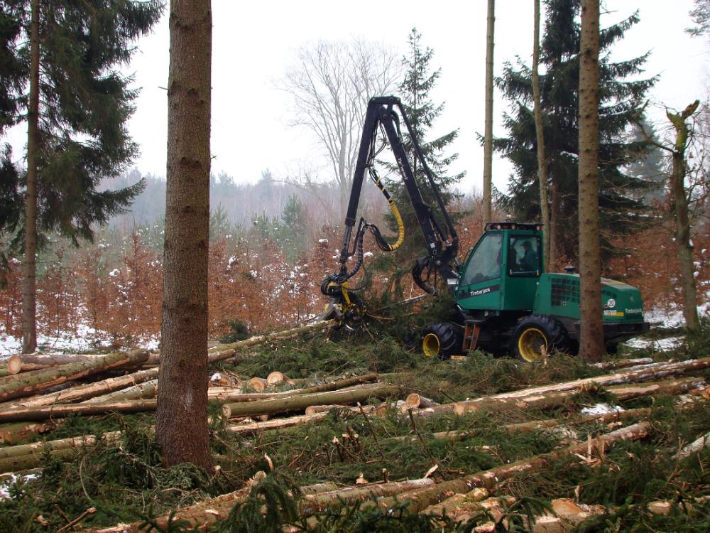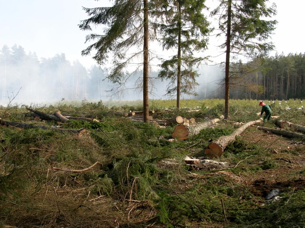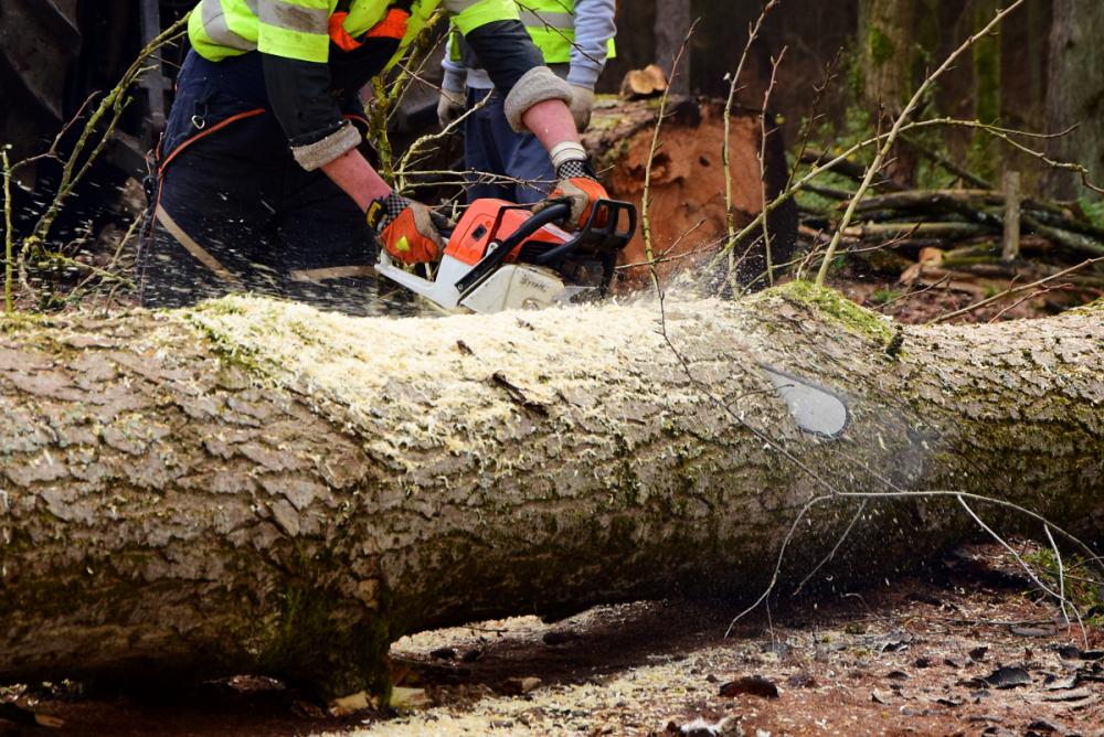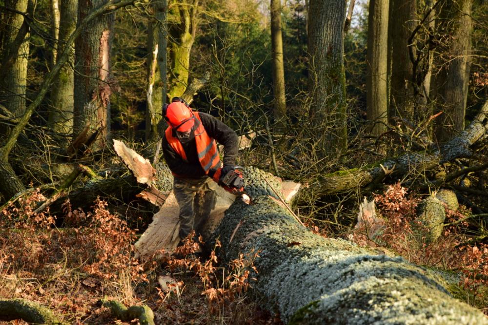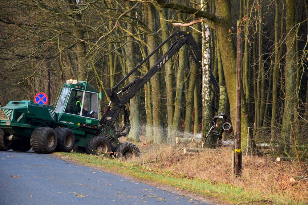 Prace przy pozyskaniu drewna.