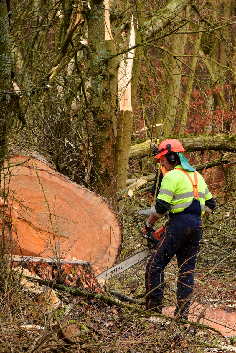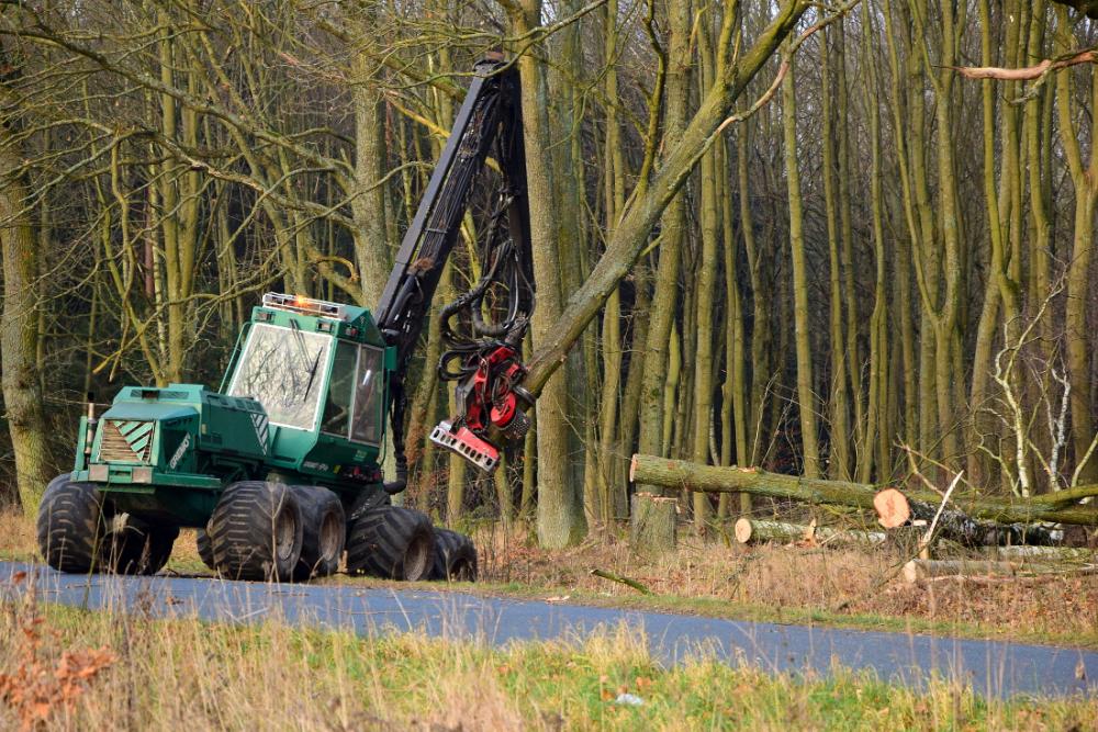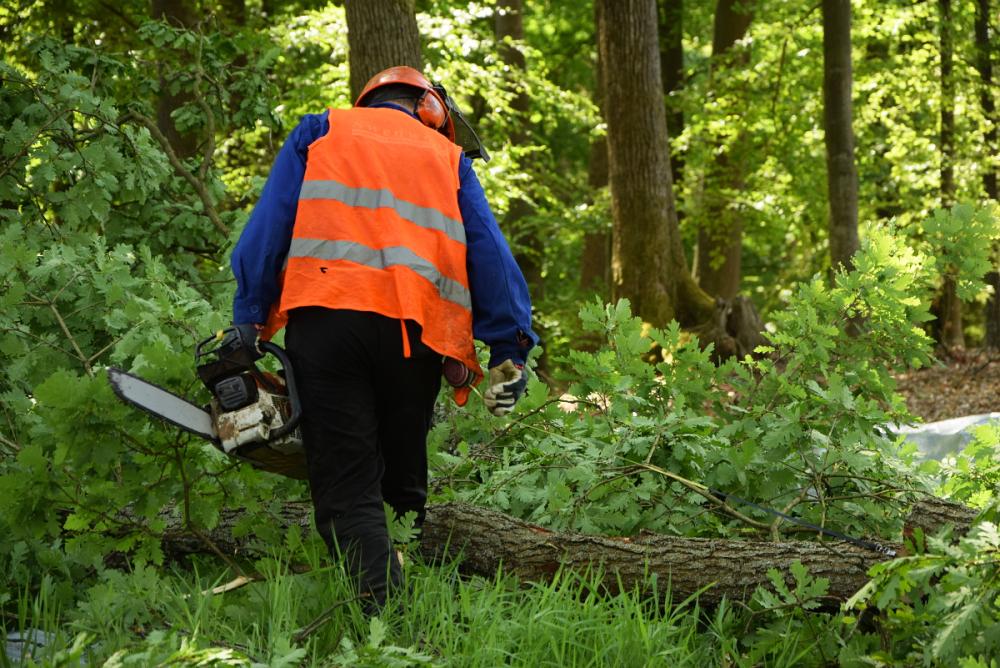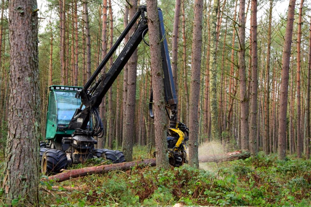 Prace przy pozyskaniu drewna.